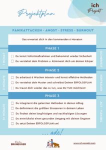 In Phase 3 wirst du deinen Erfolgsplan umsetzen und durch viele positive Erfahrungen deine Ängste bewältigen. Du wirst ein biopsychosoziales Stressmanagement in deinen Alltag aufnehmen und eine gesunde Haltung zu Stress und Angst entwickeln!